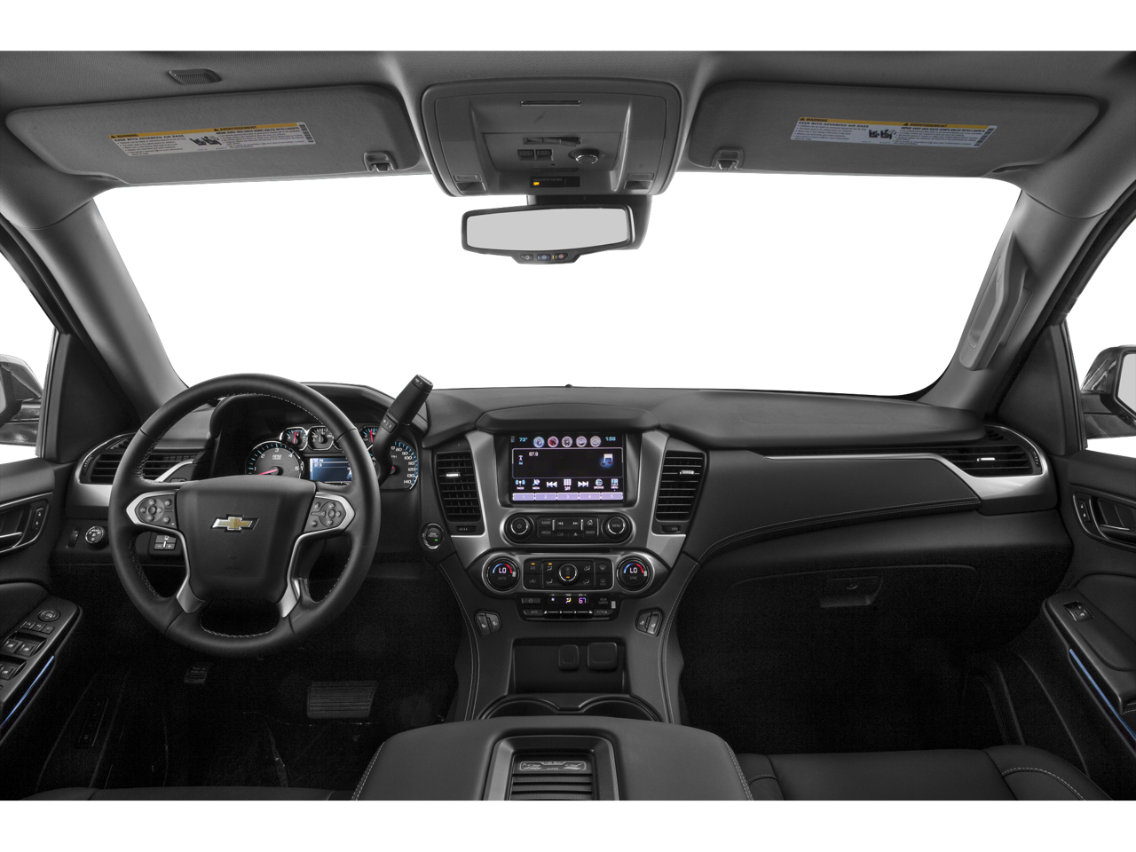 Sun. Entertainment and Destinations Package: Chevrolet MyLink Radio with Navigation/AM/FM Stereo; Rear Seat Blu-Ray/DVD Entertainment System; Power Sunroof. Luxury Package: 2nd Row Power Release 60/40 Split Folding Bench Seat; Heated 2nd Row Seats; Hands Free Power Liftgate; Heated Leather Wrapped Steering Wheel; Memory Settings; 3rd Row 60/40 Power Fold Split-Bench; Front and Rear Parking Assist; Power-Folding Heated Outside Mirrors; Side Blind Zone Alert with Lane Change Alert; Power Tilt and Telescopic Steering Column with Memory; Passive Entry System; Fog Lamps; Rear Cross-Traffic Alert; Keyless Start Switch; Wireless Charging. Max Trailering Package: 2-Speed Active Electronic Autotrac Transfer Case; Standard Suspension Package; 3.42 Rear Axle Ratio; Integrated Trailer Brake Controller. Preferred Equipment Group 1LT: Extended-Range Remote Keyless Entry; Memory Settings; 2nd Row 60/40 Split-Folding Manual Bench; Forward Collision Alert; Leather-Appointed Seat Trim; Front Heated Reclining Bucket Seats; Power Liftgate; Rear Park Assist with Audible Warning; Floor Console; Chevrolet MyLink AM/FM Stereo with CD Player; 5 12-Volt Auxiliary Power Outlets; 18" X 8.5" Aluminum Wheels; Single-Speed Active Autotrac Transfer Case; Driver Inboard and Front Passenger Airbags; Auto-Dimming Inside Rearview Mirror; Power Adjustable Pedals; Lane Departure Warning and Safety Alert Seat; Premium Smooth Ride Suspension Package; 3rd Row Manual 60/40 Split-Folding Fold Flat Bench; Universal Home Remote; Heavy-Duty Rear Locking Differential. Rear Seat Blu-Ray/DVD Entertainment System. 20" X 9" Polished-Aluminum Wheels. Power Sunroof. Power Release 2nd Row Bucket Seats. Chevrolet MyLink Radio with Navigation/AM/FM Stereo. **Equipment listed is based on original vehicle build and subject to change. Please confirm the accuracy of the included equipment by calling the dealer prior to purchase.**